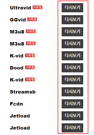 아래 사진과 같이 원하는 방송 다시보기를 클릭하면 아래와 같은 링크 목록들이 나옵니다. 이때 목록들 중에서 아무 곳이나 "다시보기"를 클릭하면 끝입니다.